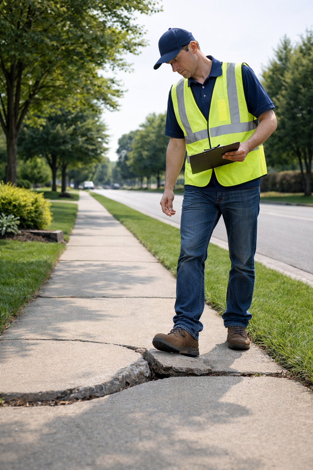 Sidewalk Safe provides on-site sidewalk inspection services to help municipalities, HOAs, and property owners identify sidewalk hazards before they become safety or liability issues.